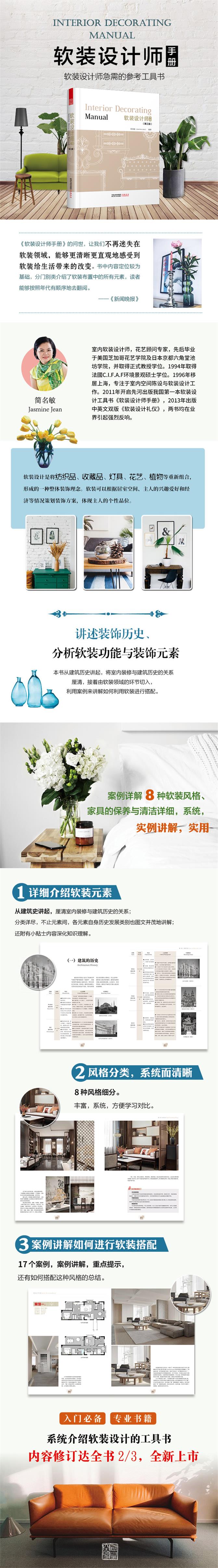 一直信奉這么一句話——編輯的幸福就是讓讀者滿足。于是在一致的理念之下,我與簡老師便有了這次愉悅的合作之旅。應(yīng)該說,這本《軟裝設(shè)計(jì)師手冊》無論是在編、?;蚱渌矫妫純A注了作者的大量心血,書中的每處細(xì)節(jié)都是在簡老師的親自參與和指導(dǎo)下完成的,這是該書難能可貴的優(yōu)點(diǎn)。當(dāng)然,因?yàn)槲业拇质琛⑹苤R面的局限,書中肯定會存有這樣或那樣的缺點(diǎn)或不足,但我想,這本書總算是給軟裝行業(yè)提供了一個(gè)基礎(chǔ),后面的人可以不斷去加以改進(jìn)、提高和完善。