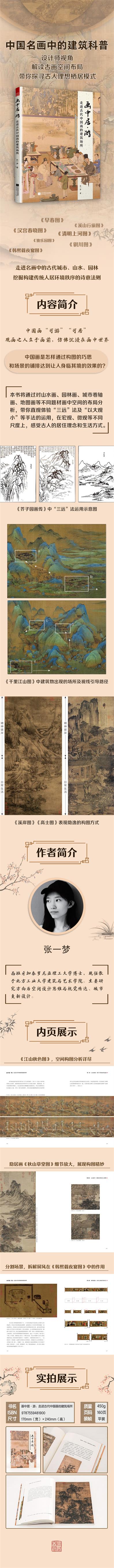 與西方繪畫不同,中國畫“可游”“可居”。觀畫之人立于畫前,就仿佛沉浸在了畫中世界,在畫境中徜徉,那么,如此神奇的中國畫,是怎樣通過構(gòu)圖的巧思和場景的鋪排來達(dá)到這種讓人身臨其境的效果呢,這本書將通過對山水畫、園林畫、城市卷軸畫、地圖畫等不同題材的畫中空間布局的分析,讓讀者直觀的體驗(yàn)“三遠(yuǎn)”法及“以大觀小”等手法的運(yùn)用,從宏觀和微觀不同尺度上,了解古人的居住理念和生活方式。