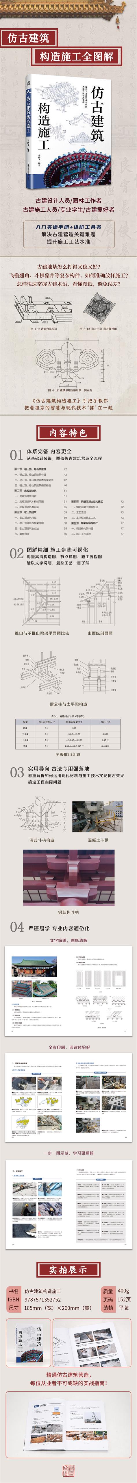 (1)內(nèi)容詳細(xì)。涵蓋了仿古建筑從基礎(chǔ)到裝飾的全部內(nèi)容。