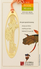 韓國Goodwill書簽采用24K鍍金,造型獨特多變,刺繡、鏤空打造,通透細(xì)致,薄如蟬翼,精細(xì)質(zhì)感。花、葉、昆蟲等鮮活的姿態(tài)與生動的顏色被精美地定格在書簽里,讓您在書香四溢中呼吸自然的氣息,陪你在歲月中長久的感動。